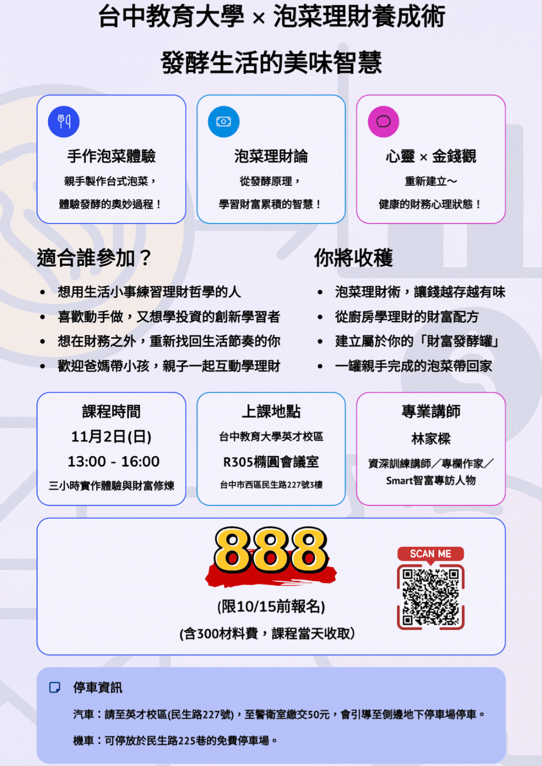 • 費用: 報名費:早鳥開運價 588 元(原價 800 元)10/15之前報名