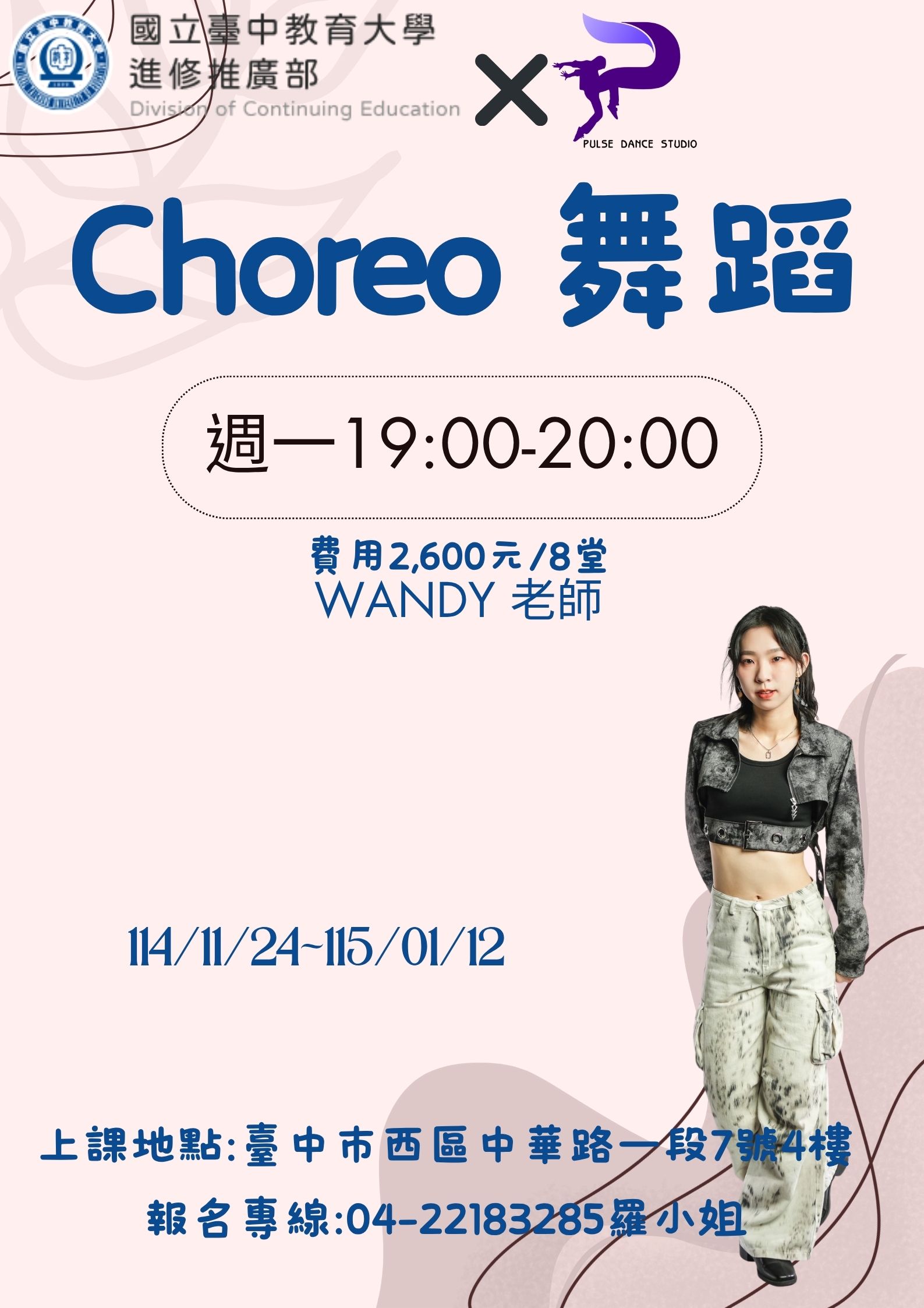 上課地點:臺中市西區中華路一段7號4樓(Pulse Dance Studio)