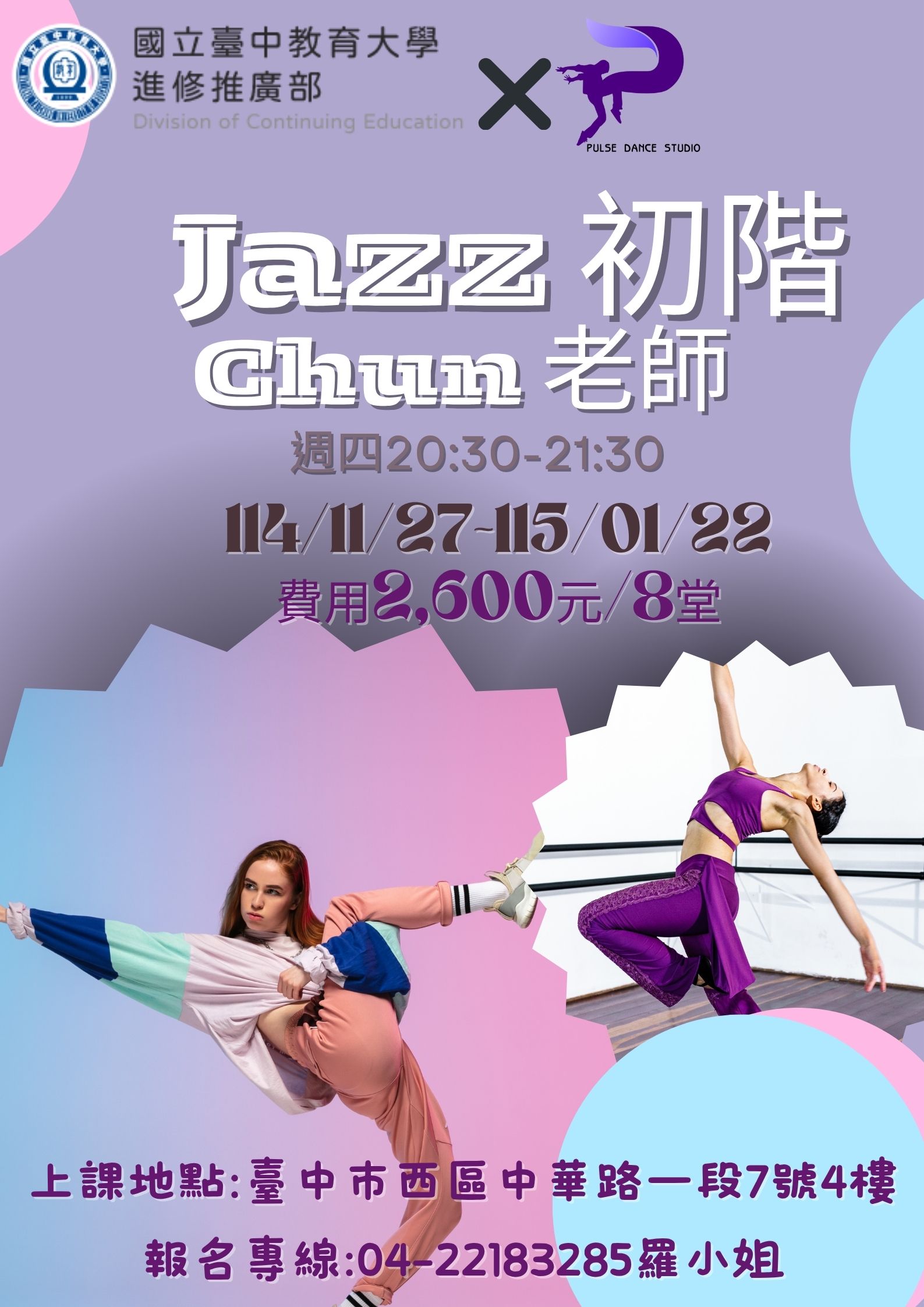 Chun 老師帶領的 Jazz 初階課程,融合優雅與力量。