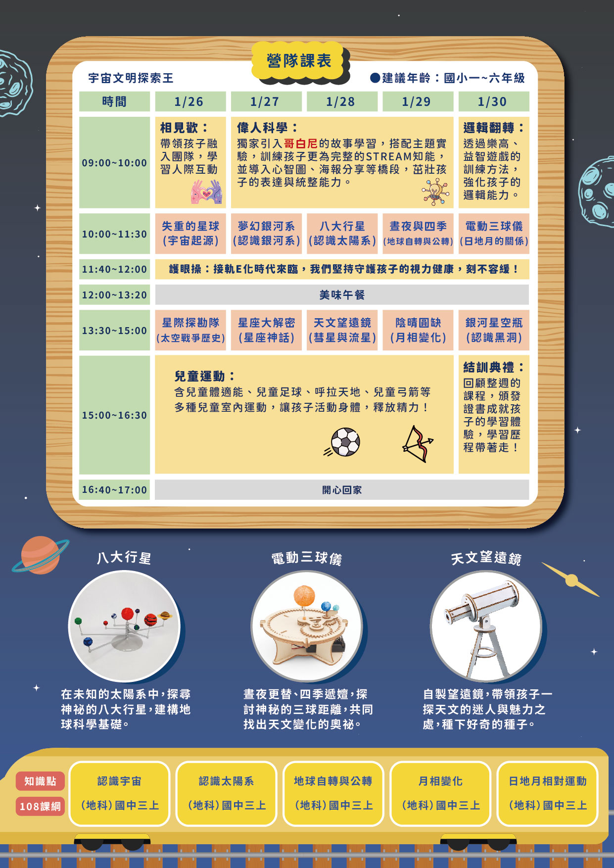 3.天文素養:結合教育部108課綱,培養學生天文素養。