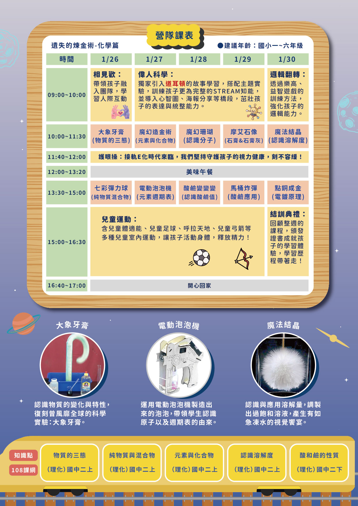 > 課程資訊 > STREAM科普-遺失的煉金術- 化學篇(1/26-1/30)