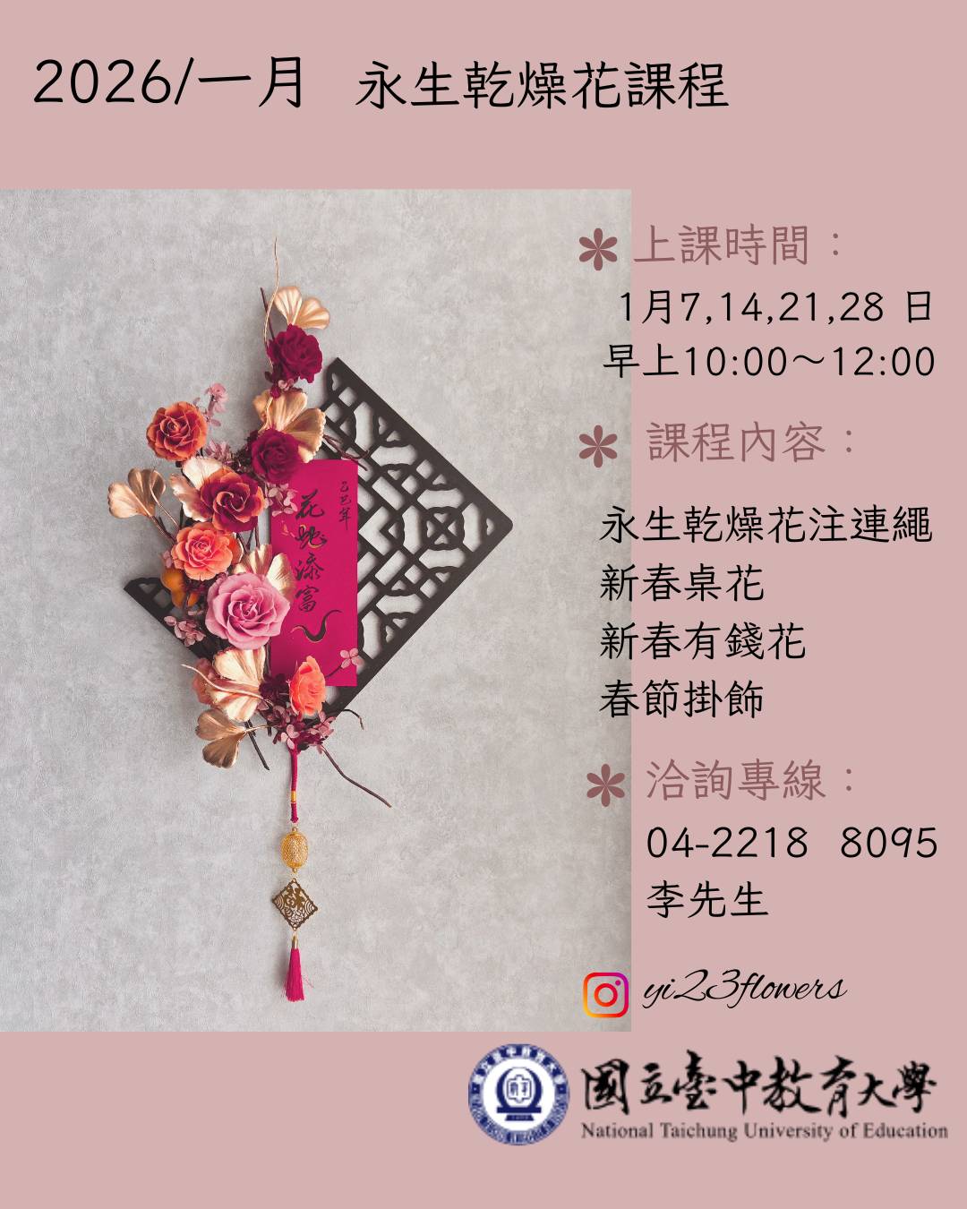 新春主題◇◆ 《以花佐日。生活花藝_1月招生》(週三早-永生乾燥花) ◇◆