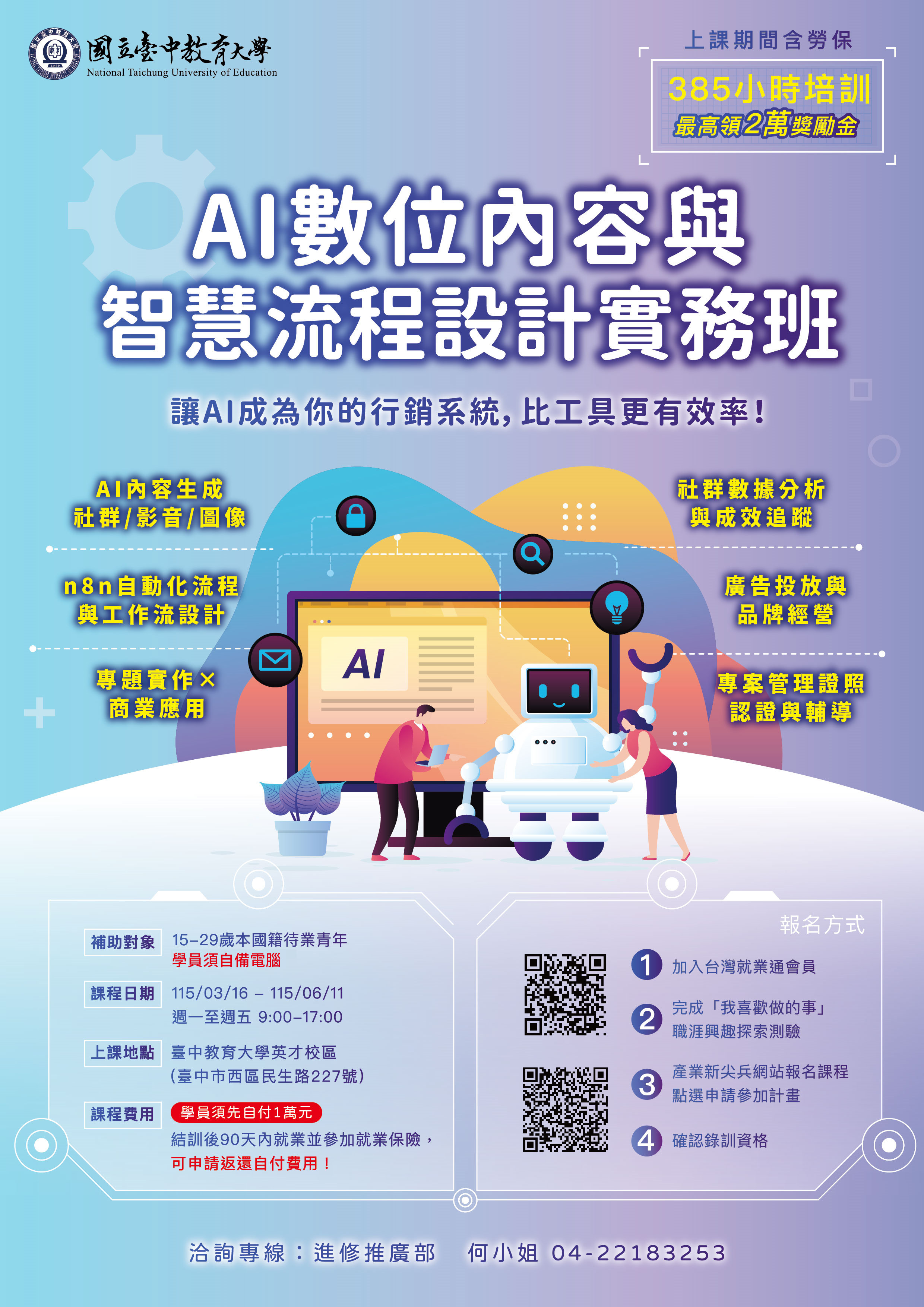 2.學習API串接實務,能整合社群平台、雲端服務與AI模型,建構跨系統的自動化工作流。