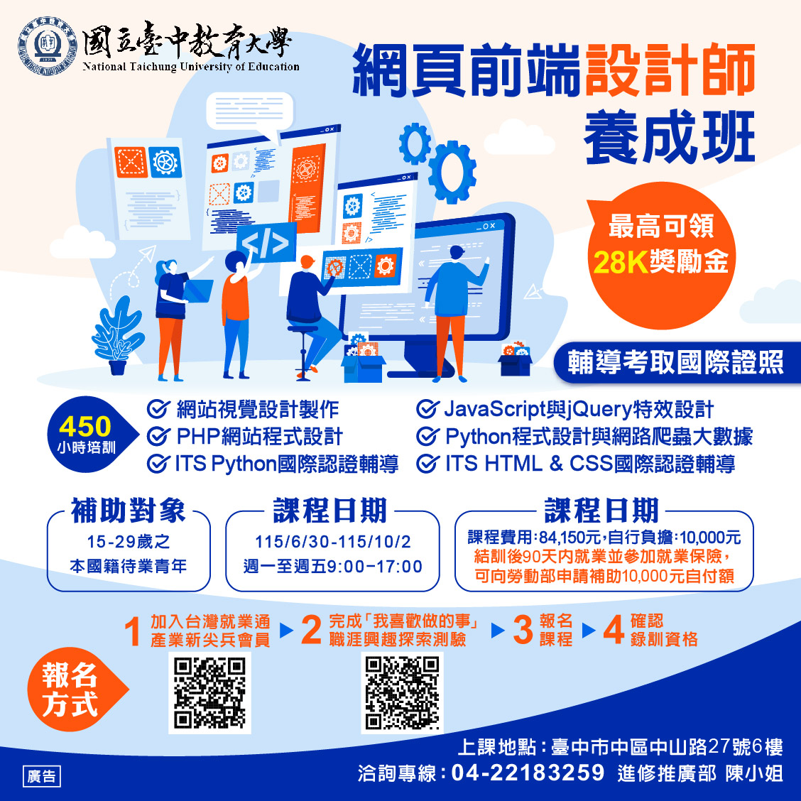 > 課程資訊 > 【政府補助課程】網頁前端設計師養成班
