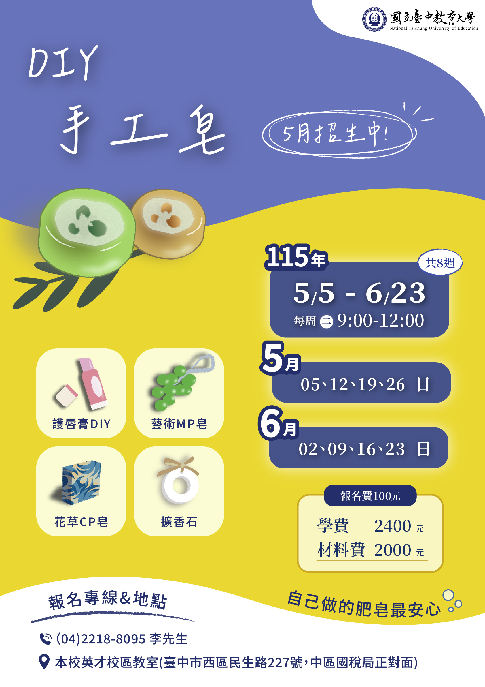 課程專線:04-22188095 李先生[臺中教育大學進修推廣部]