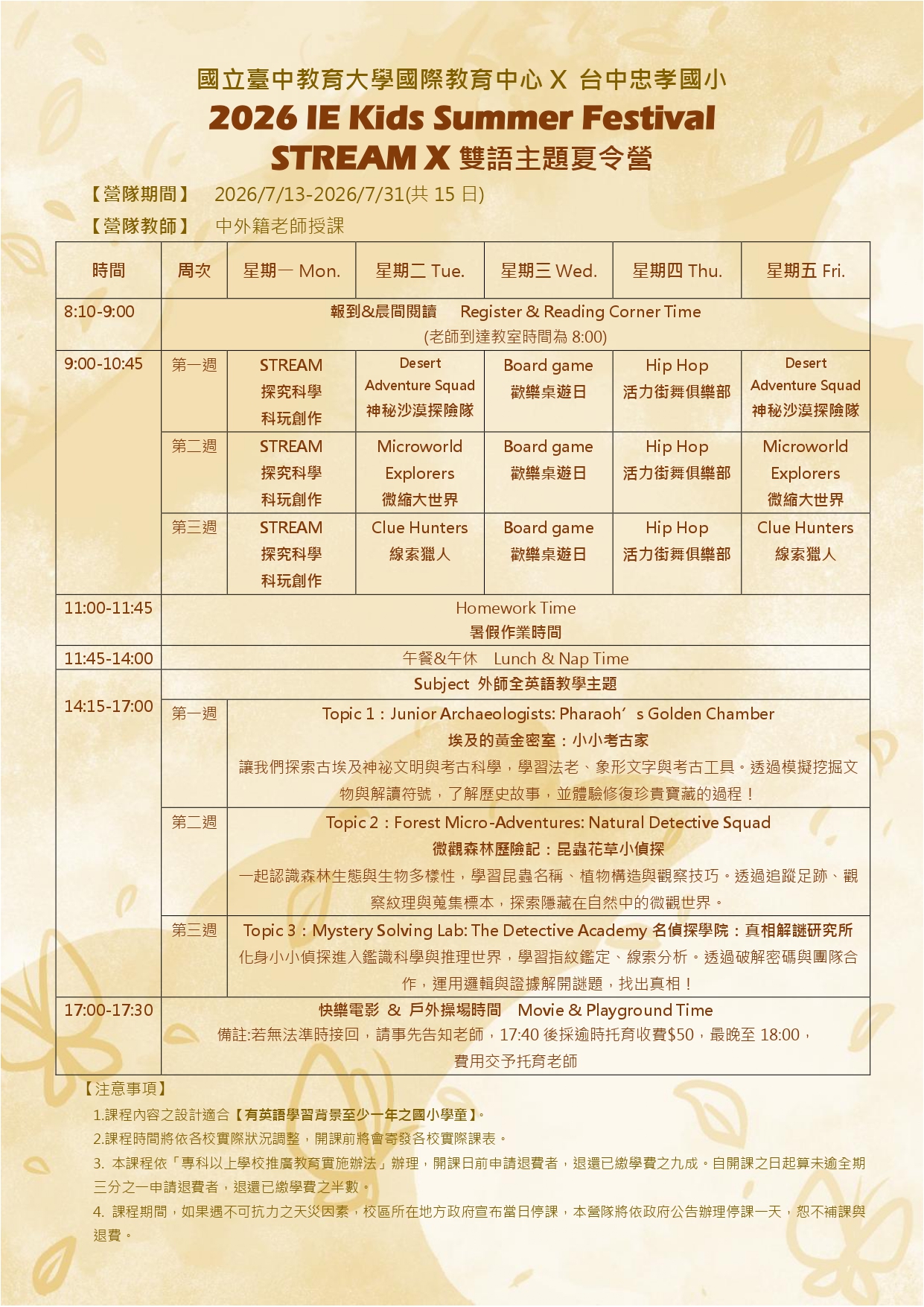 2026IE七月份國際班英語夏令營(台中忠孝)
