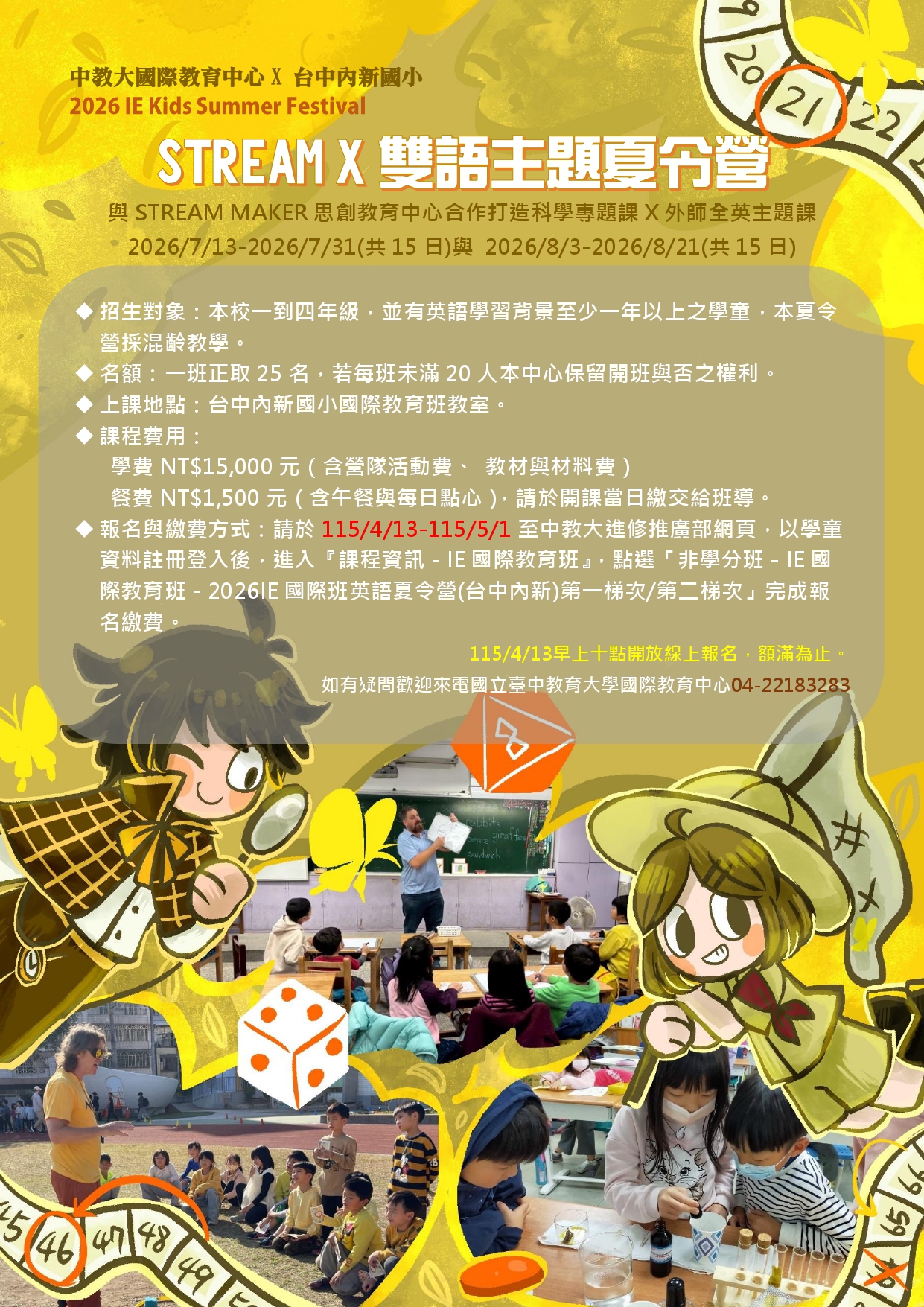 首頁 > 課程資訊 > 2026IE七月份國際班英語夏令營(內新)