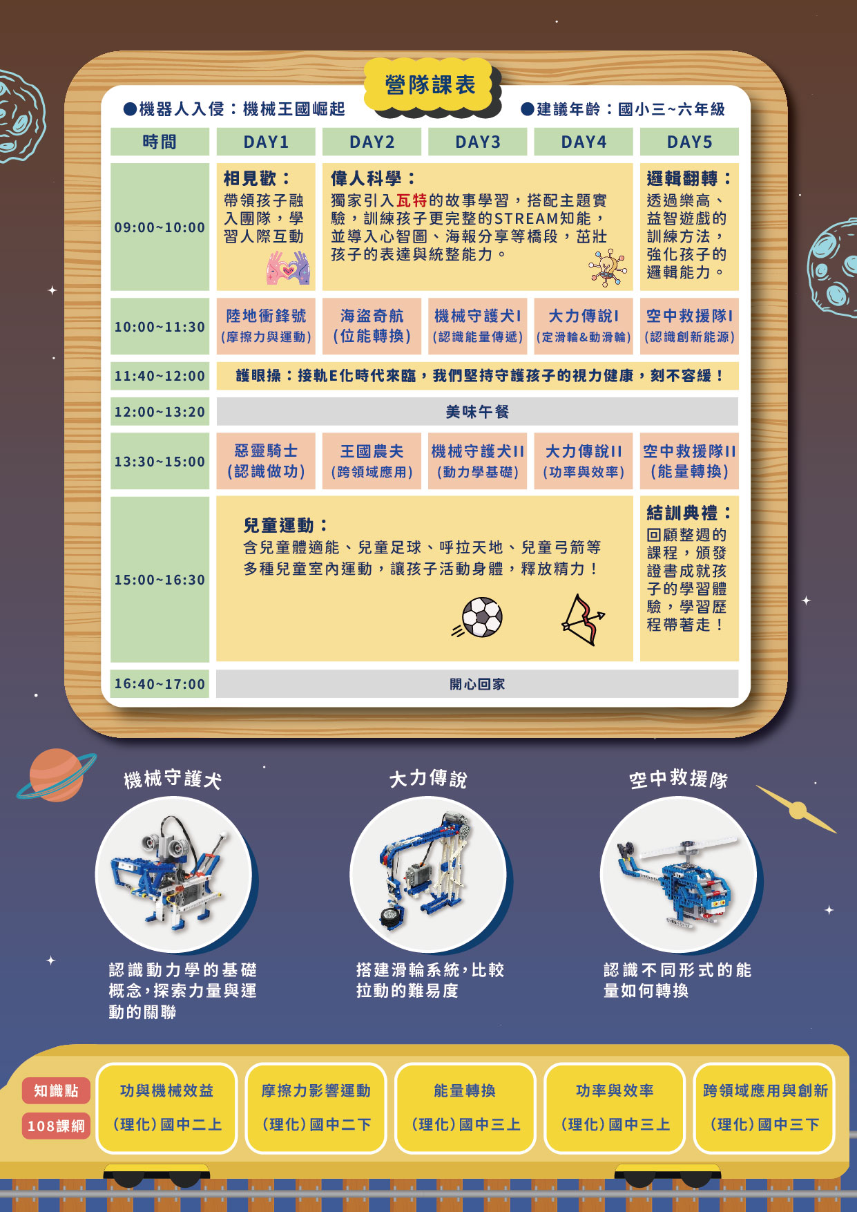 2.理化銜接:將機械操作融入力學與能量概念,接軌國中理化課程。
