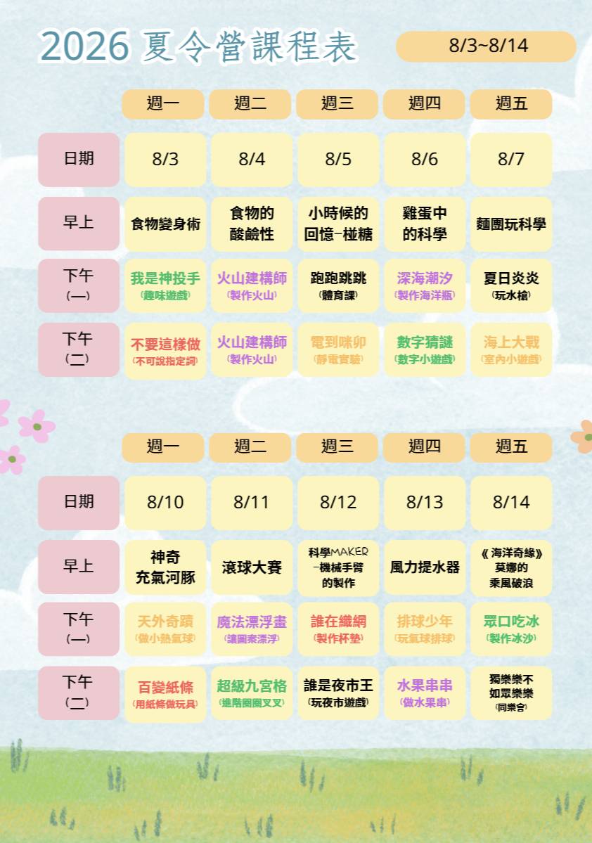 5.課程期間,如遇不可抗力之天災因素,校區所在地方政府宣布當日停課,本營隊將依政府公告停課一天,不補課/退費當日費用之9成(不含100元報名費)。