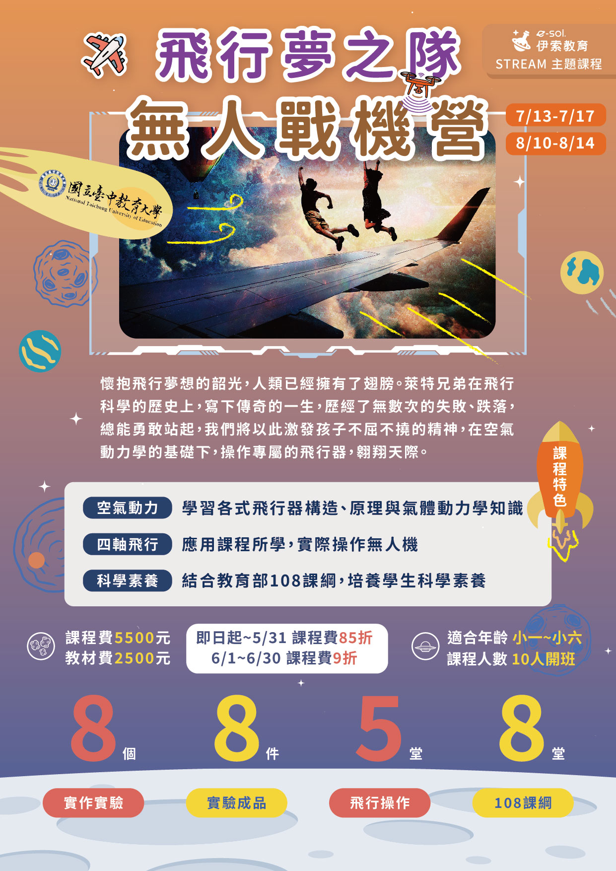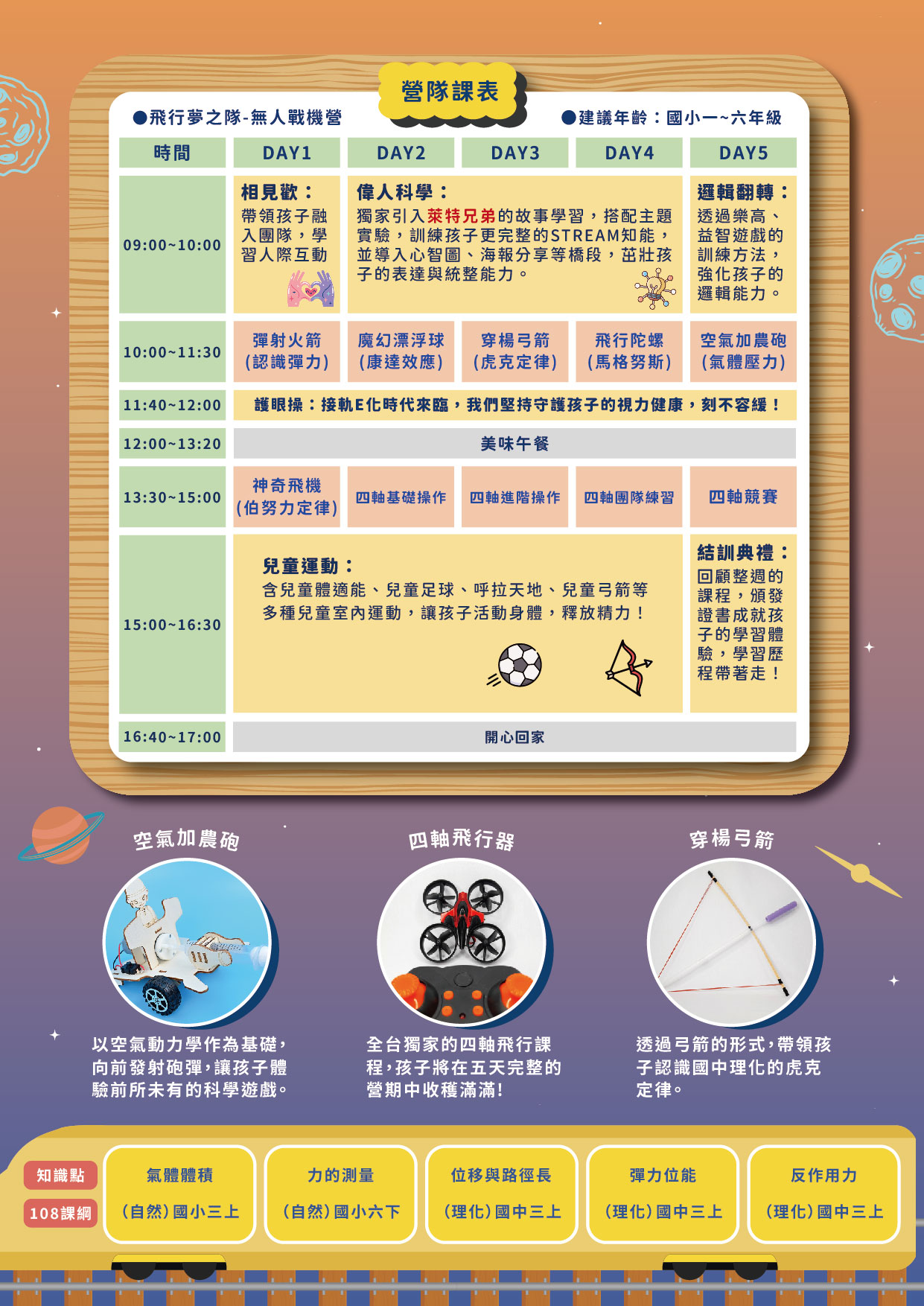 > 課程資訊 > STREAM科普-飛行夢之隊-無人戰機營(7/13-7/17)