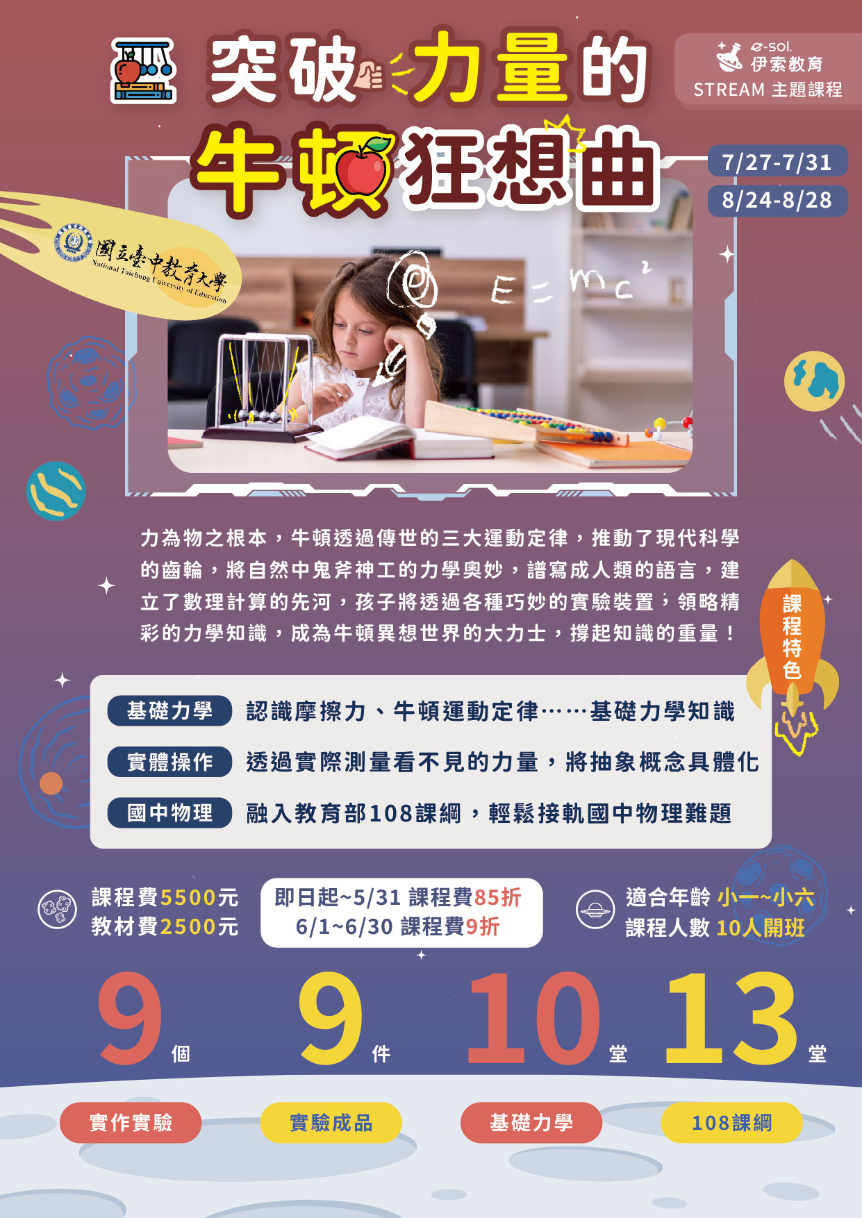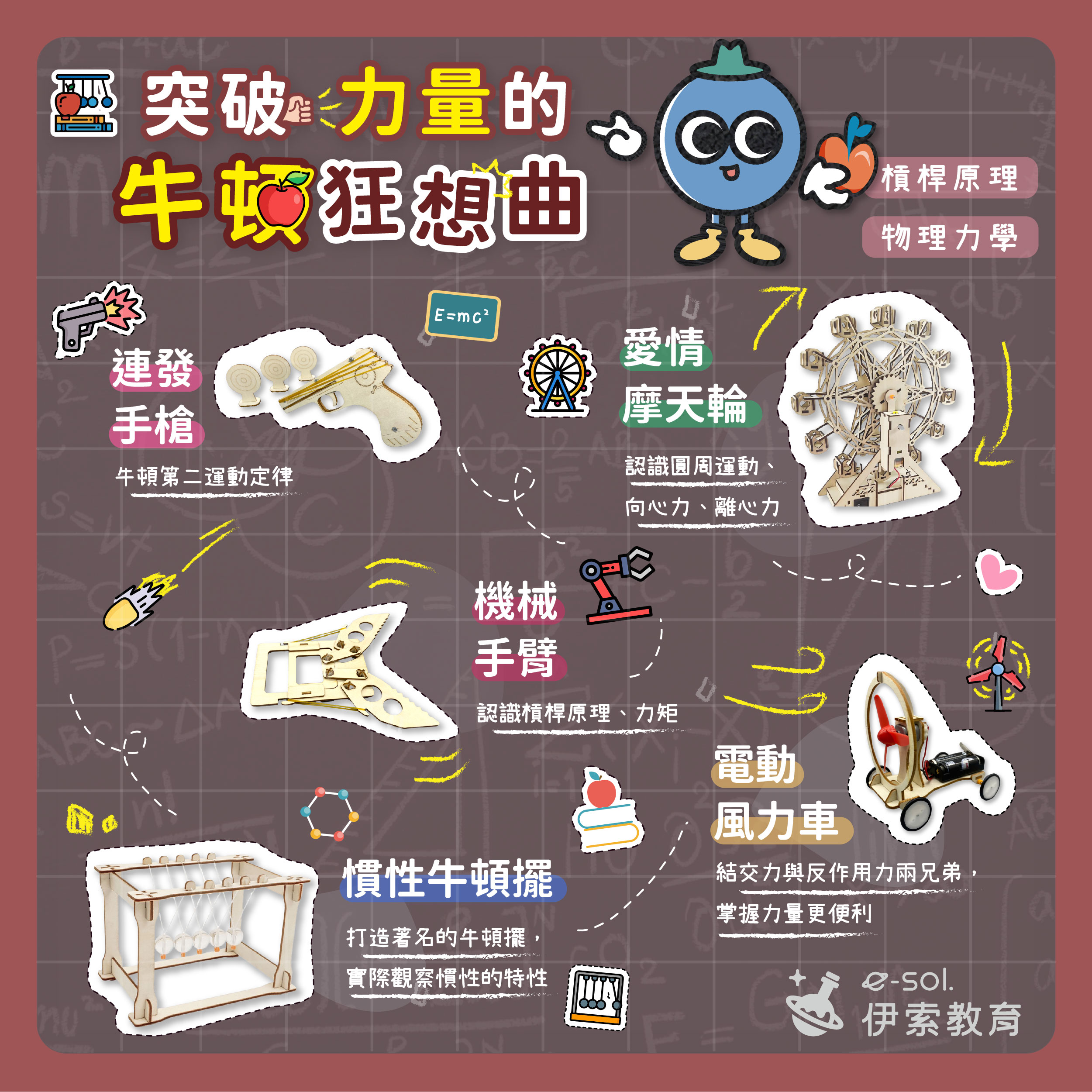 力為物之根本,牛頓透過傳世的三大運動定律,推動了現代科學的齒輪,將自然中鬼斧神工的力學奧妙,譜寫成人類的語言,建立了數理計算的先河,孩子將透過各種巧妙的實驗裝置,領略精彩的力學知識,成為牛頓異想世界的大力士,撐起知識的重量!