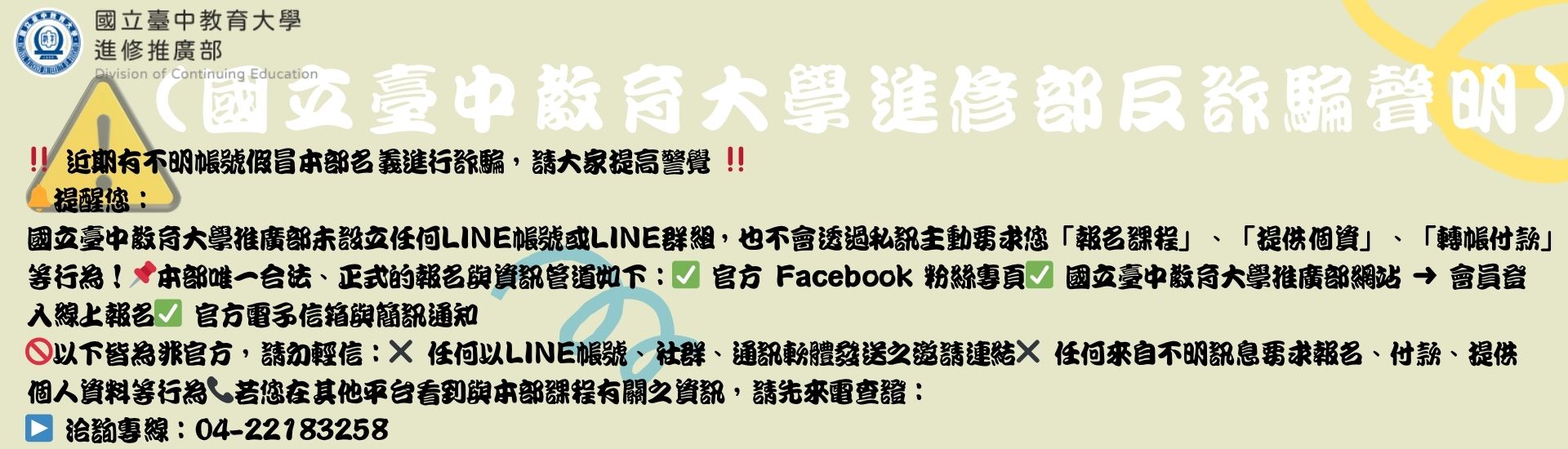 【公告】本校「115年度幼兒園園長專業訓練課程」第二期受理報名期間延長至115年4月24日止。
