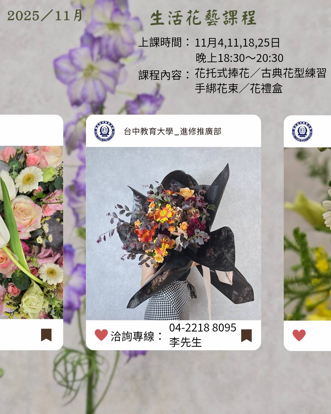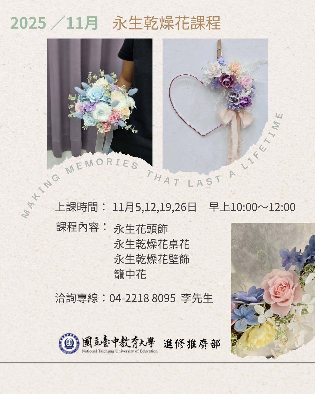 ※花材須事先準備,請假請周五中午前事先通知承辦人員或老師