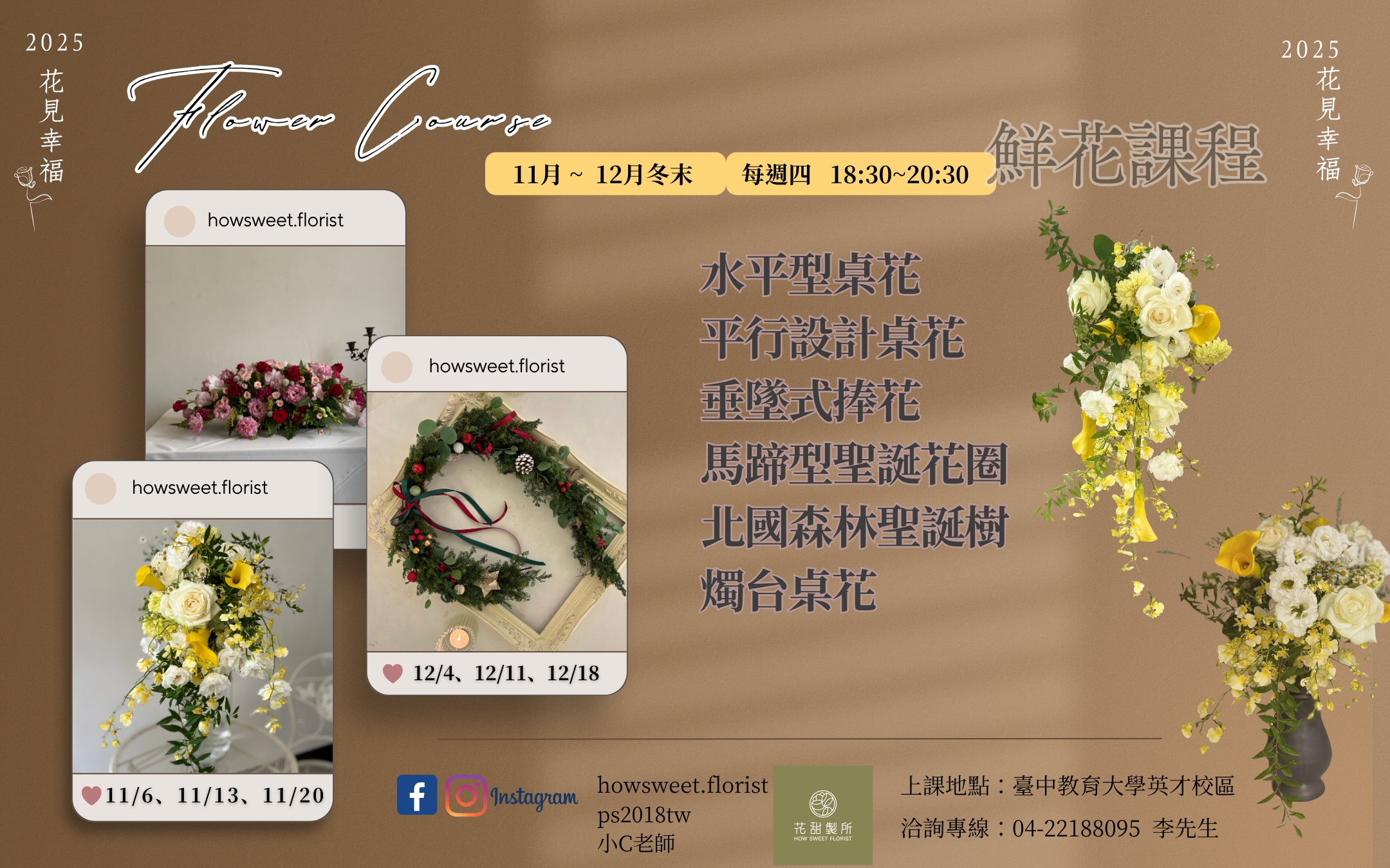 - 鮮花課程 ‧ 11-12月份招生 ◇◆共6週