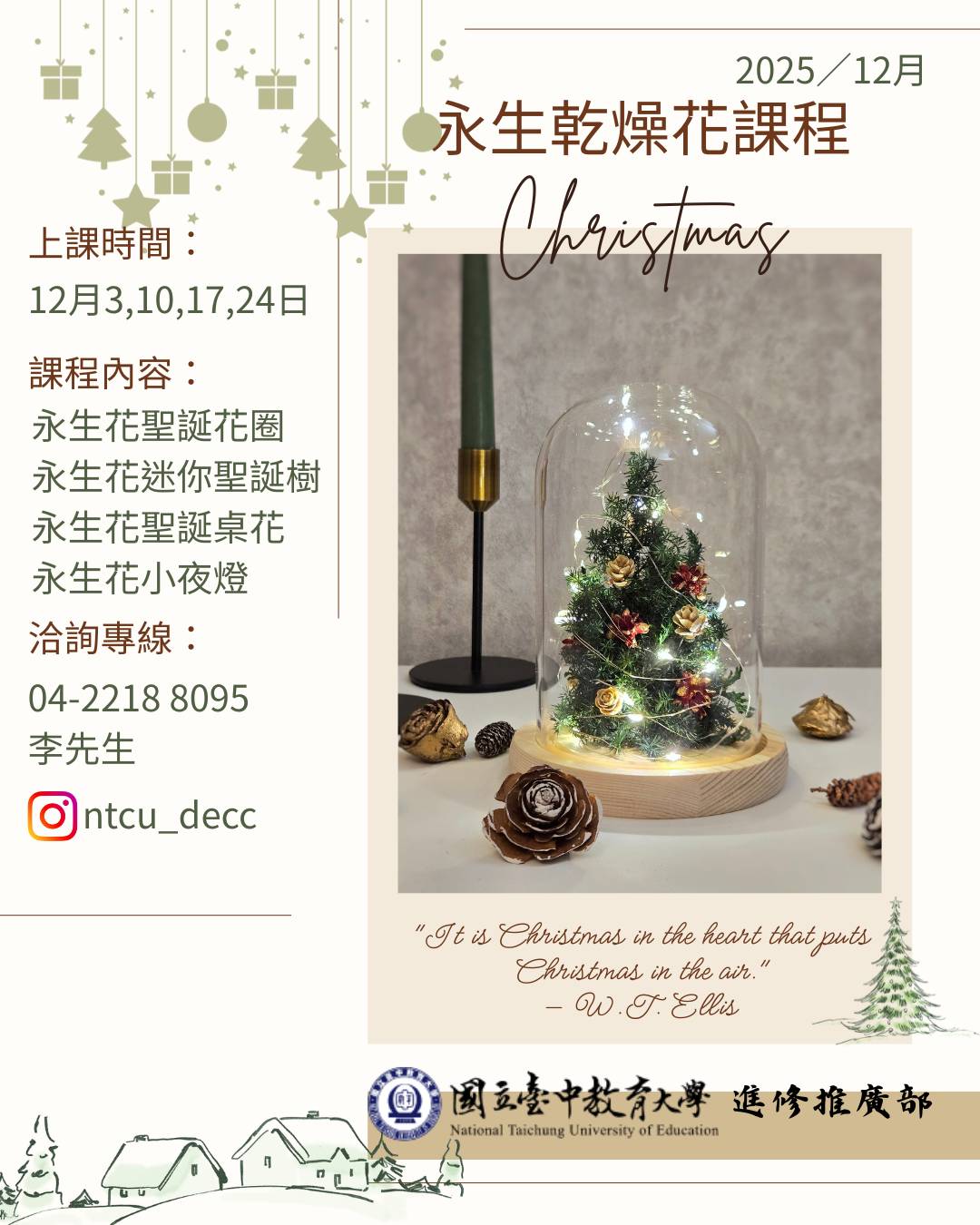 ◇時間:114年12月2日至12月23日,共4週,每週二晚上18:30-20:30