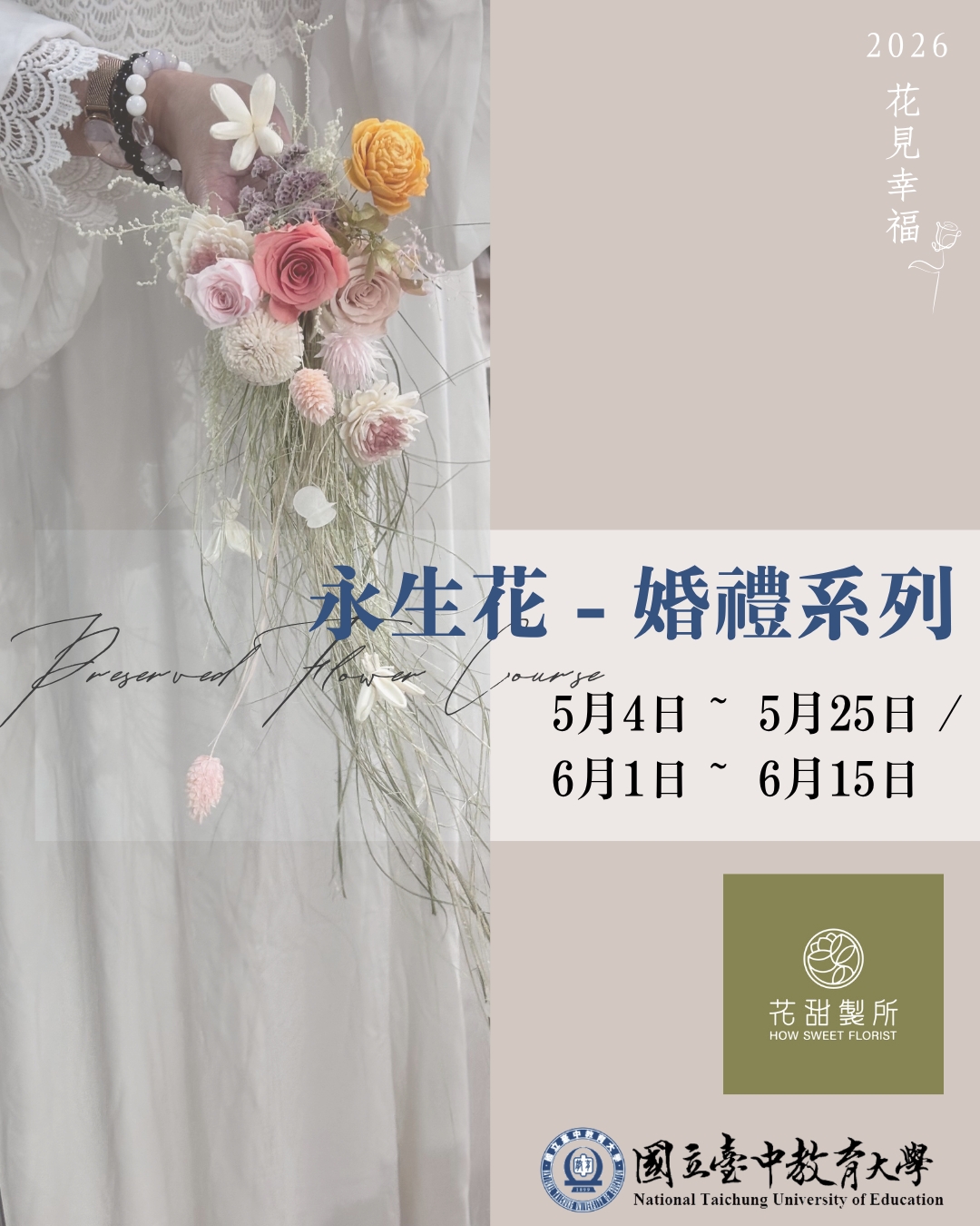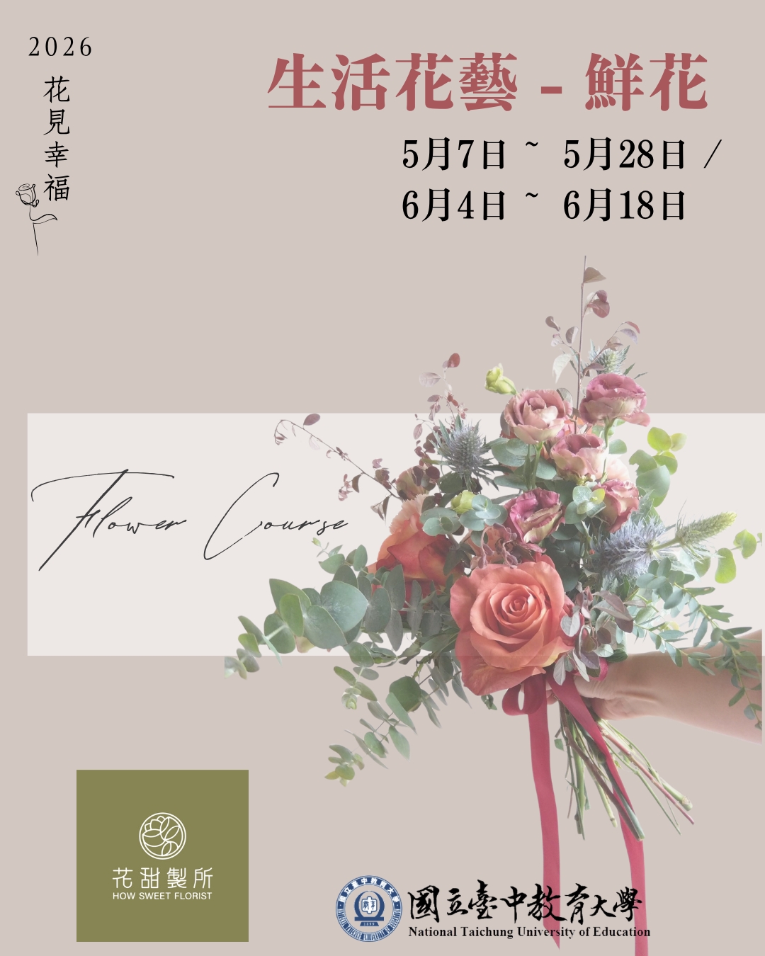 《花見幸福-5-6月》周一晚(永生花)+週四晚(鮮花)招生中