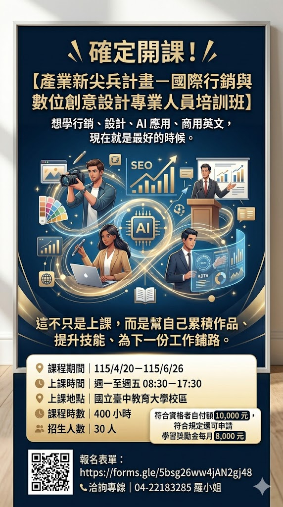 【產業新尖兵計畫-國際行銷與數位創意設計專業人員培訓班】正式招生中!