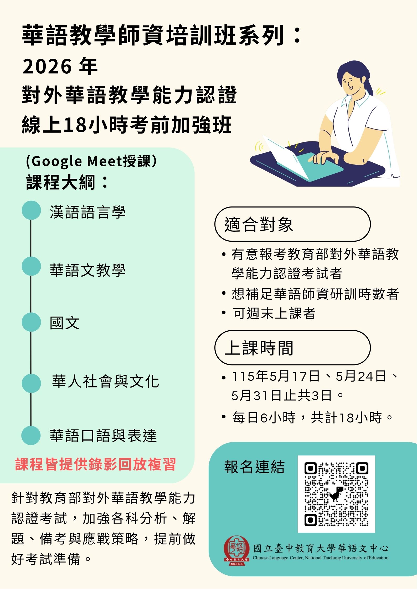 2026年對外華語教學能力認證線上18小時考前加強班~加贈錄影複習
