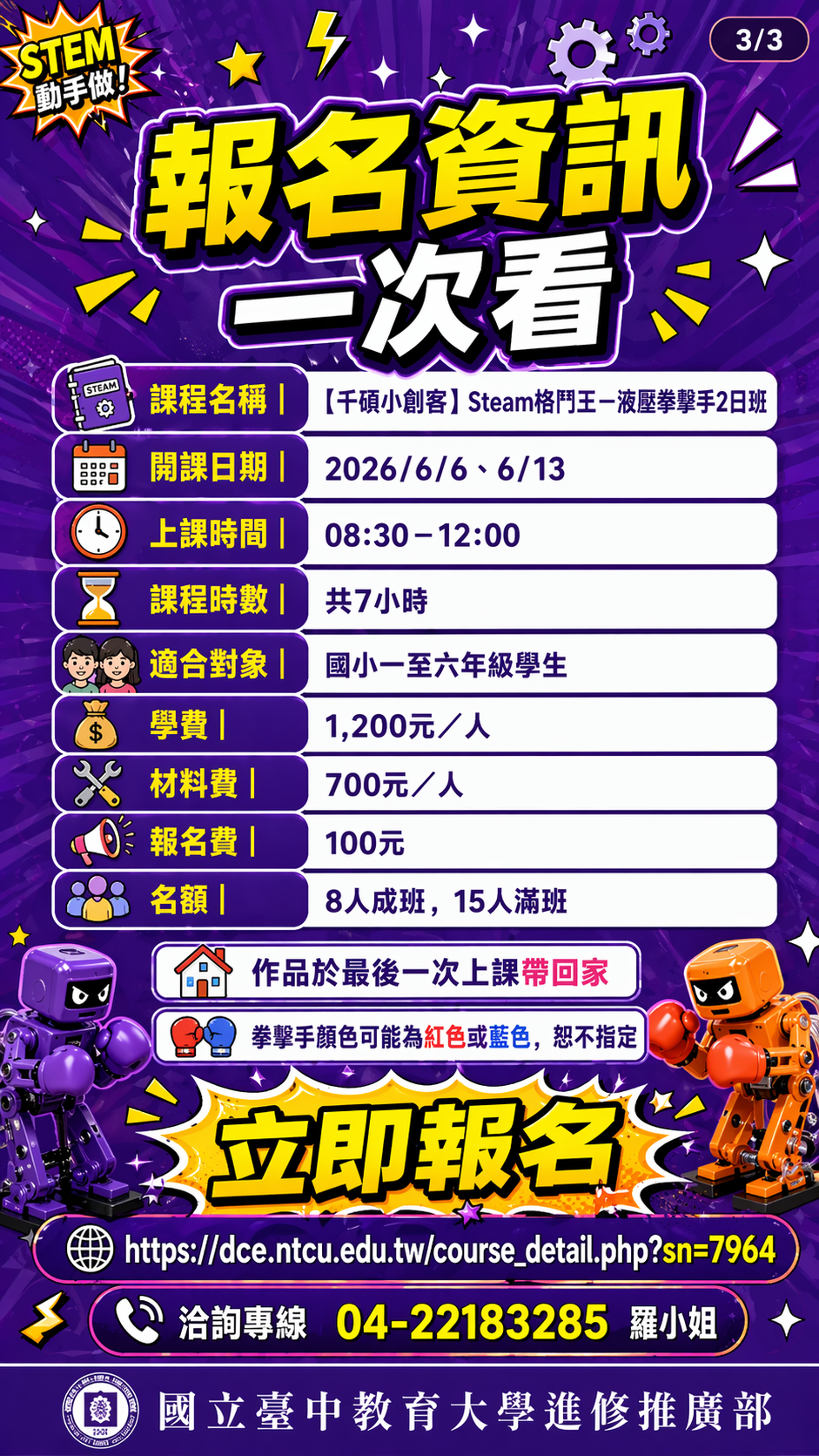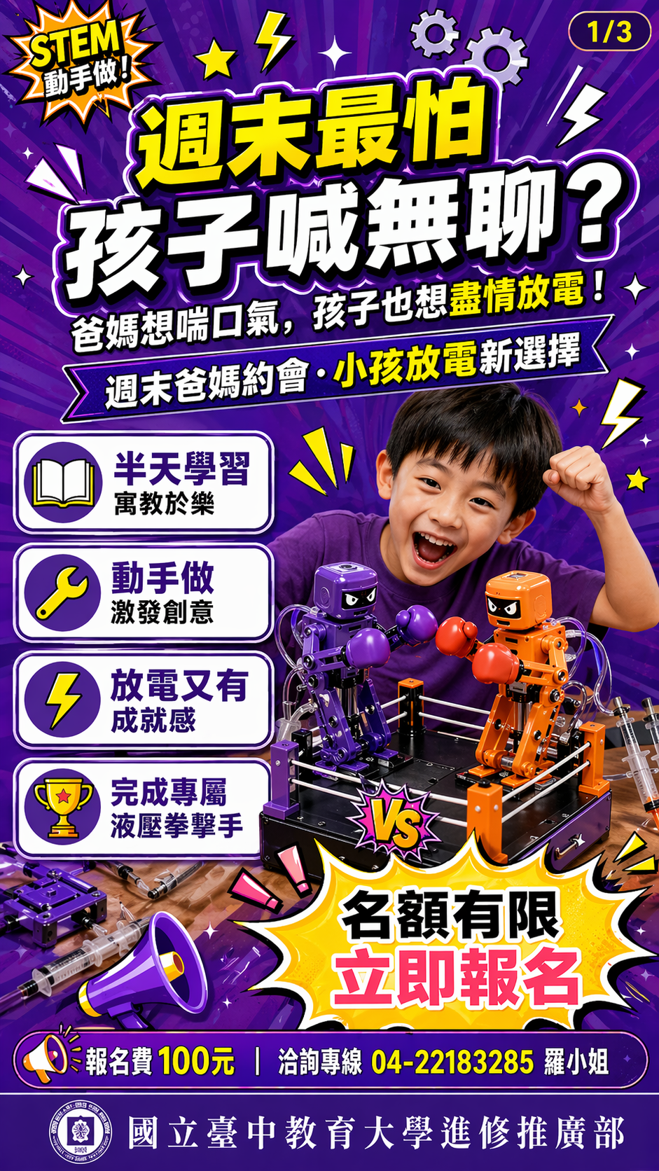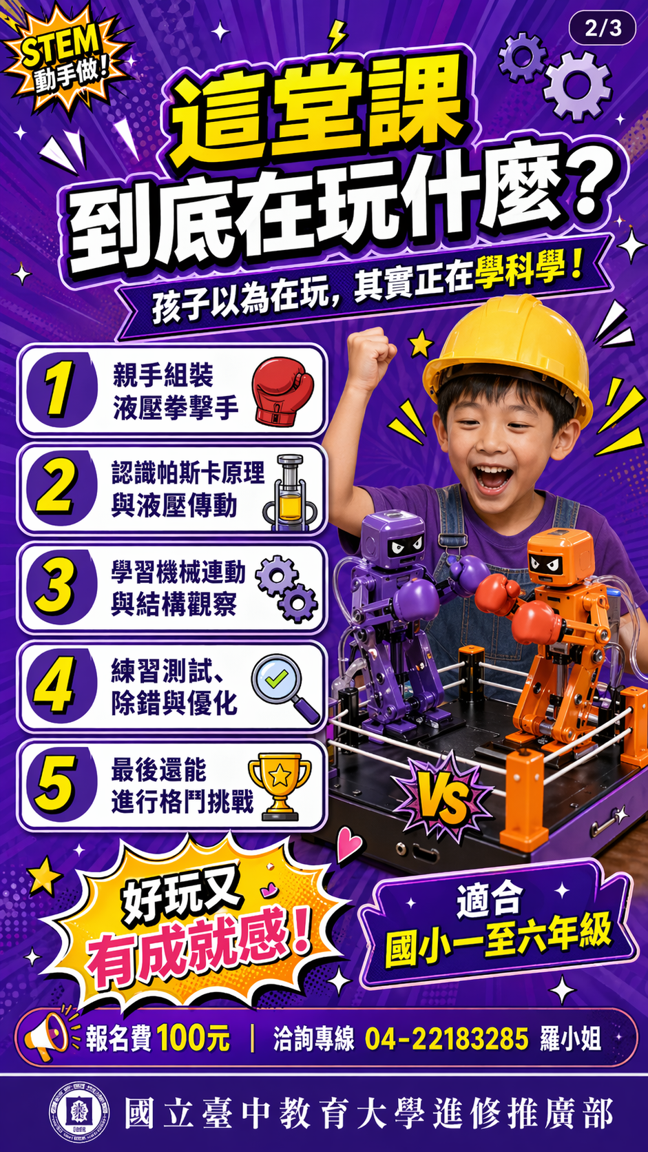 #國立臺中教育大學進修推廣部 #千碩小創客 #Steam格鬥王 #液壓拳擊手 #國小課程 #週末課程 #兒童STEAM #創客教育 #親子教育 #台中課程 #孩子放電 #爸媽約會新選擇